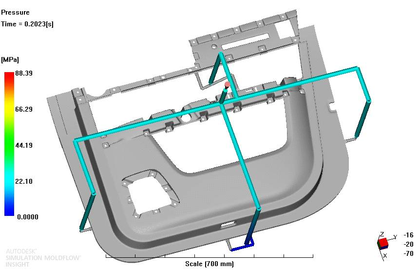 順序閥熱流道控制技術(SVG技術)是一種新型級式控制的熱流道技術,通過油缸控制按順序進膠,解決了傳統多點同步進膠的產品出現外觀缺陷的難題。可有效避免汽車內外飾件出現熔接痕,氣穴等缺陷,減少流長,降低成型壓力,在外觀要求嚴格的汽車內外飾件上發揮了巨大的作用。